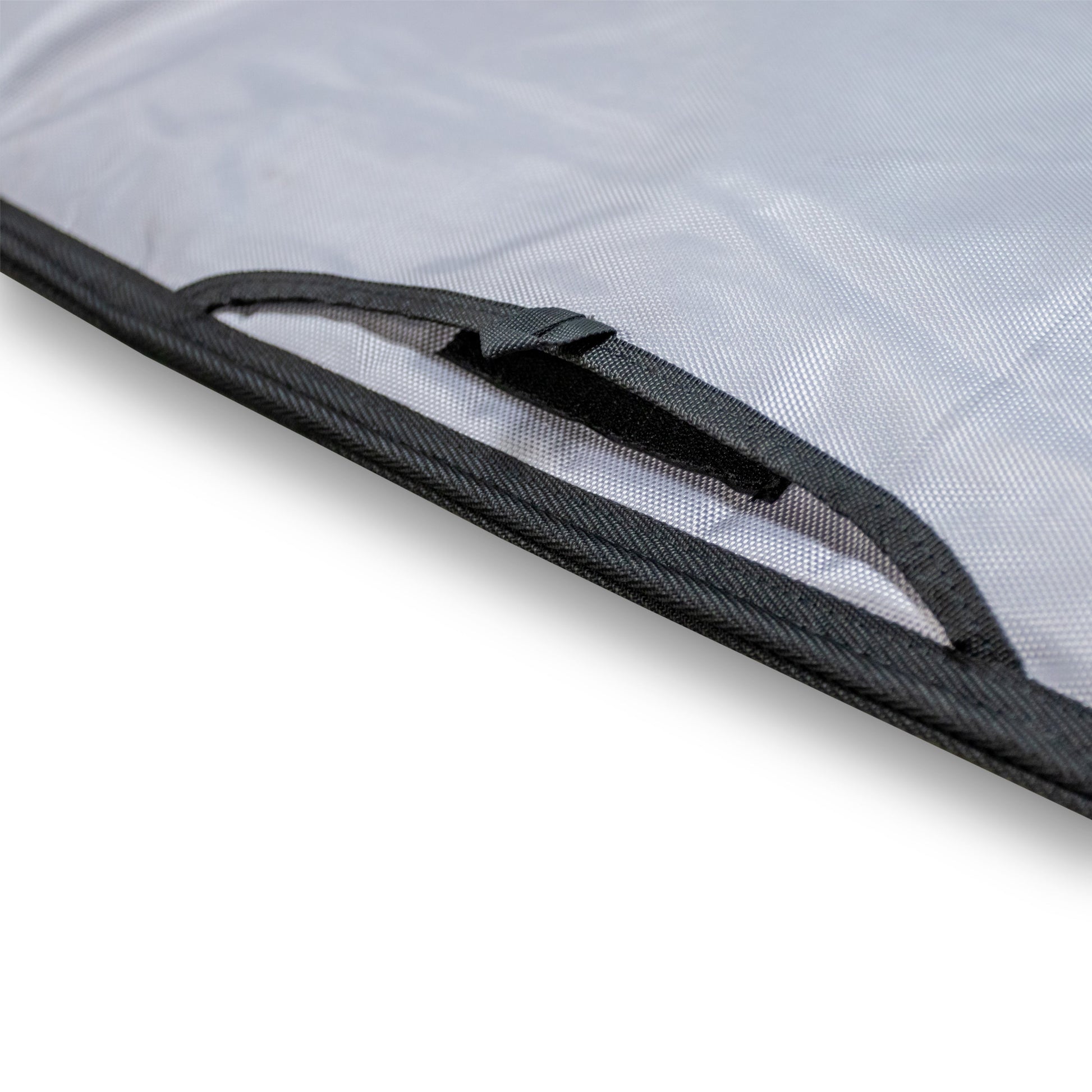 The Funboard and Mid-length Day Bag is built for surfers who need reliable protection during daily commutes to the beach. Crafted with #1680D heavy-duty poly canvas on the deck side and a silver reflective tarp on the bottom, this bag is designed to withstand heat, moisture, and rough handling. Whether you're tossing it in the back of a truck or walking it down a rocky path, the rugged materials and reinforced stitching keep your board safe from dings, UV rays, and scratches.