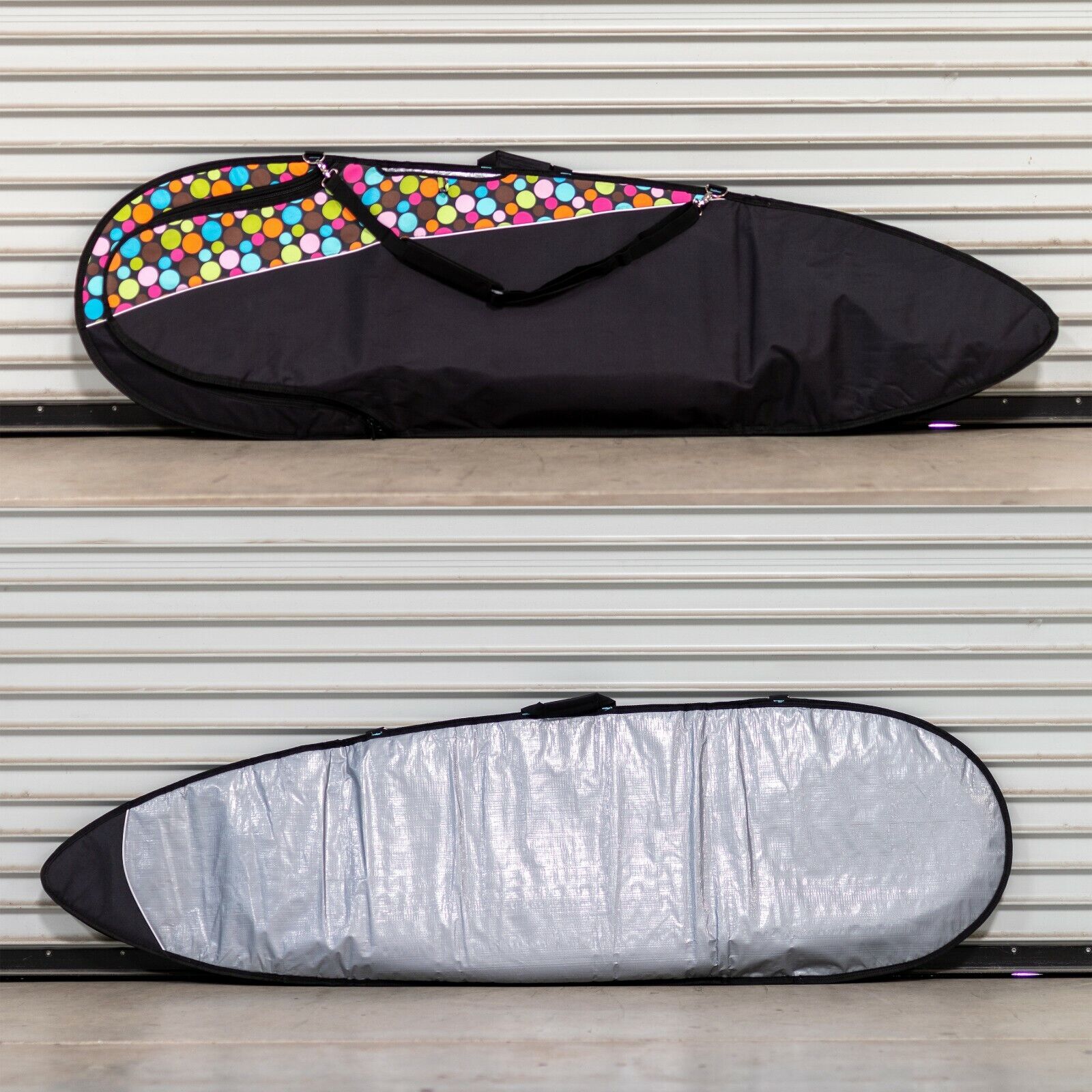The 6'6 Polka-Dot Shortboard Day Bag is a stylish and functional solution for protecting your board during daily commutes and storage. Designed to fit shortboards up to 6 feet 6 inches in length and 19 inches in width, it offers a snug, secure fit that minimizes movement and potential damage. The playful polka-dot pattern adds a touch of personality, making your gear stand out while keeping it safe.