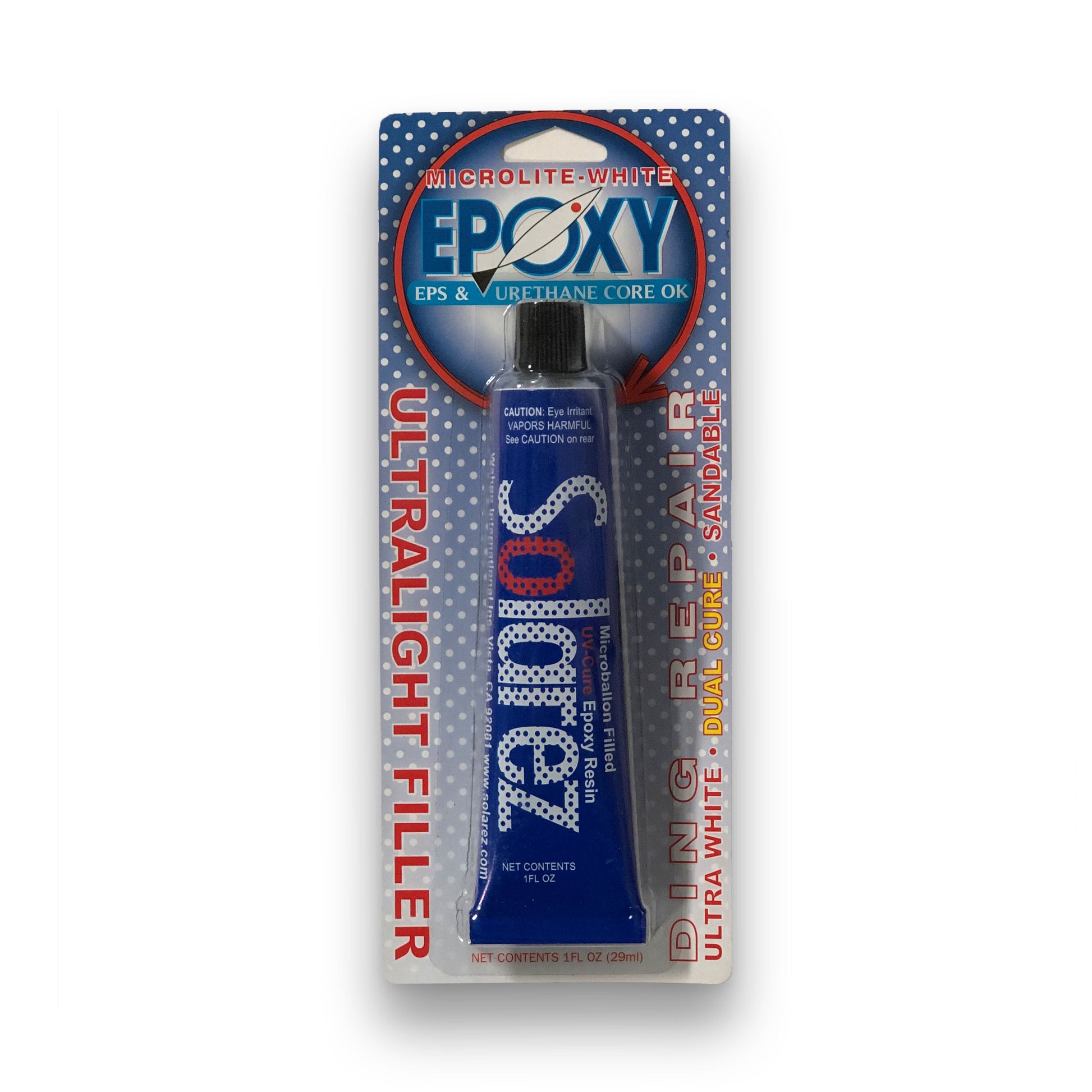 The Solarez Microlite Epoxy 1 oz Tube (Dual Core) is a high-performance ding repair solution designed specifically for epoxy and polyurethane (PU) surfboard cores. This lightweight white putty is formulated with UV-cure resin and microballoon additives, making it ideal for filling deep dings and foam voids. It cures rapidly in direct sunlight gelling in just 5 seconds and fully hardening in about 3 minutes, allowing for quick, efficient repairs without the need for mixing or additional tools.